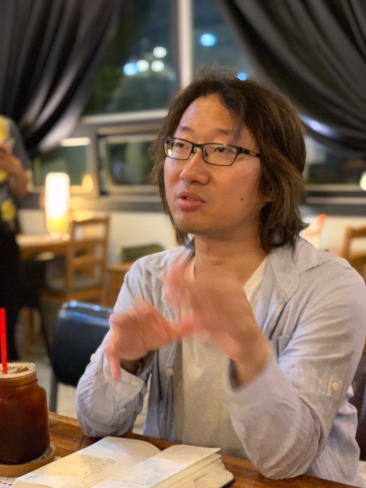 배를 든든히 하고 근처 카페에서 우리는 이야기를 나누었습니다.