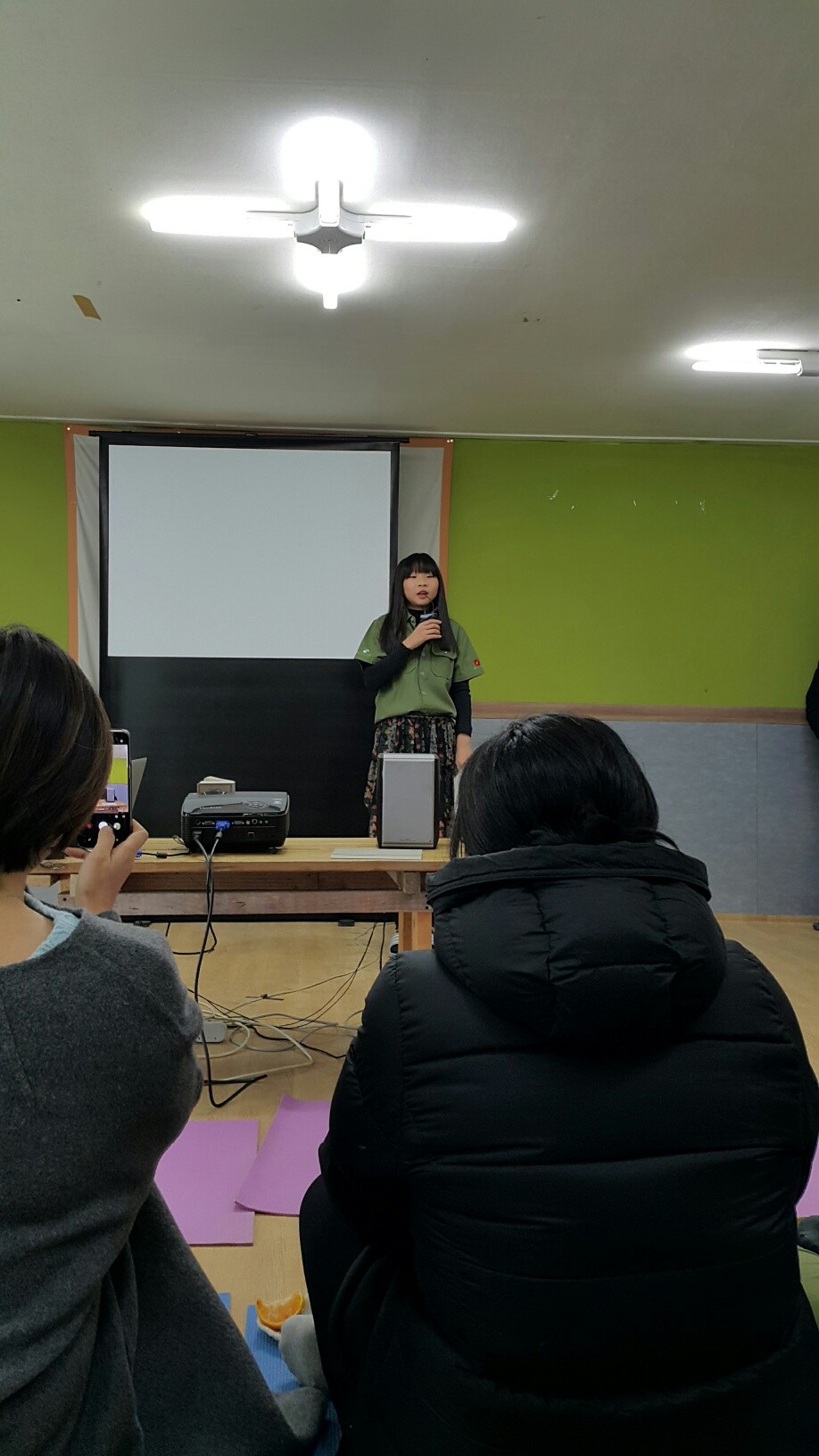 떡도 준다는 말에 솔깃하여 참여한 재서 동생 수연이, 초등 교사회 대표로 와주신 햇님선생님과 아... 안타깝게도 흰머리가 살짝 보이시는 산선생님 ^^; 을 보고 계십니다.
