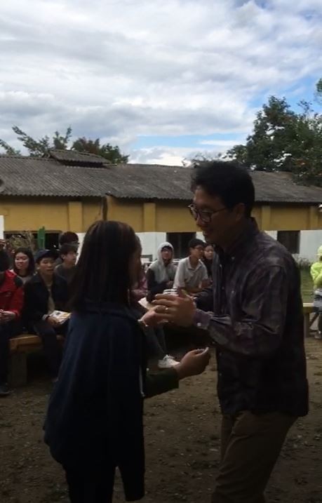 그냥 보낼 수 없어서 1~4학년 학생들은 환송 의식을 진행하기로 했습니다.