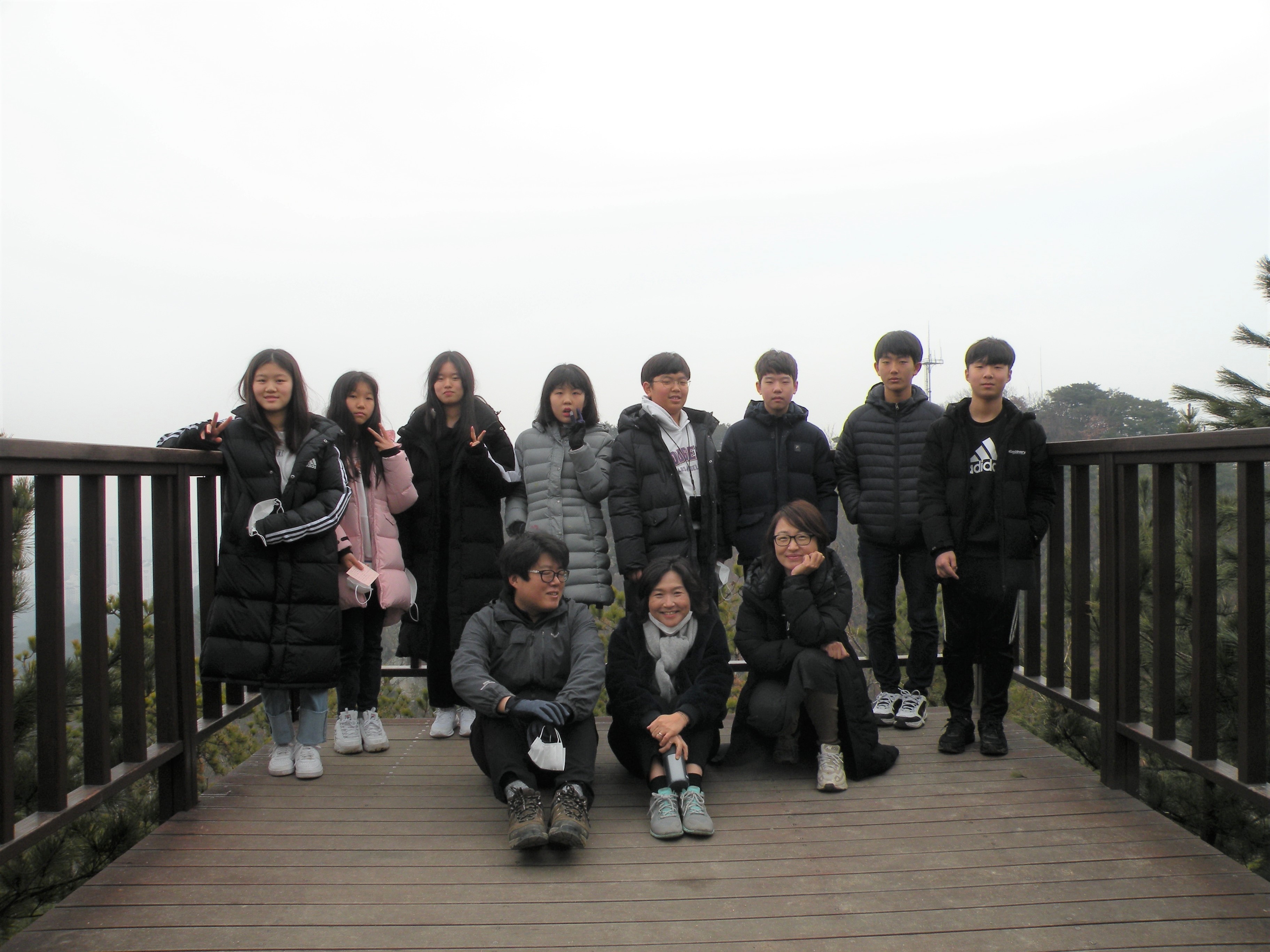 모둠별로 선생님들 한분씩 함께 했는데, 정상에 가까워지면서 학생들은 안보이고 선생님들의 거친 숨소리와 함께 난간에 기대어 계시는 모습으로 모여 계시네요.