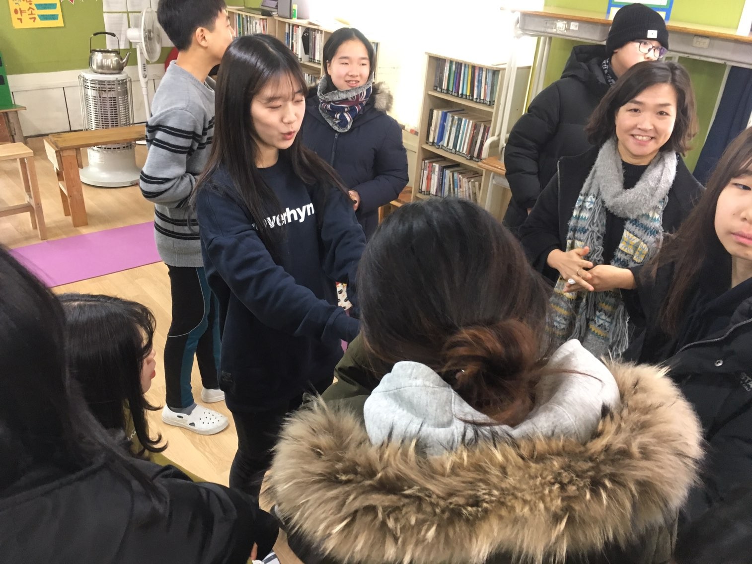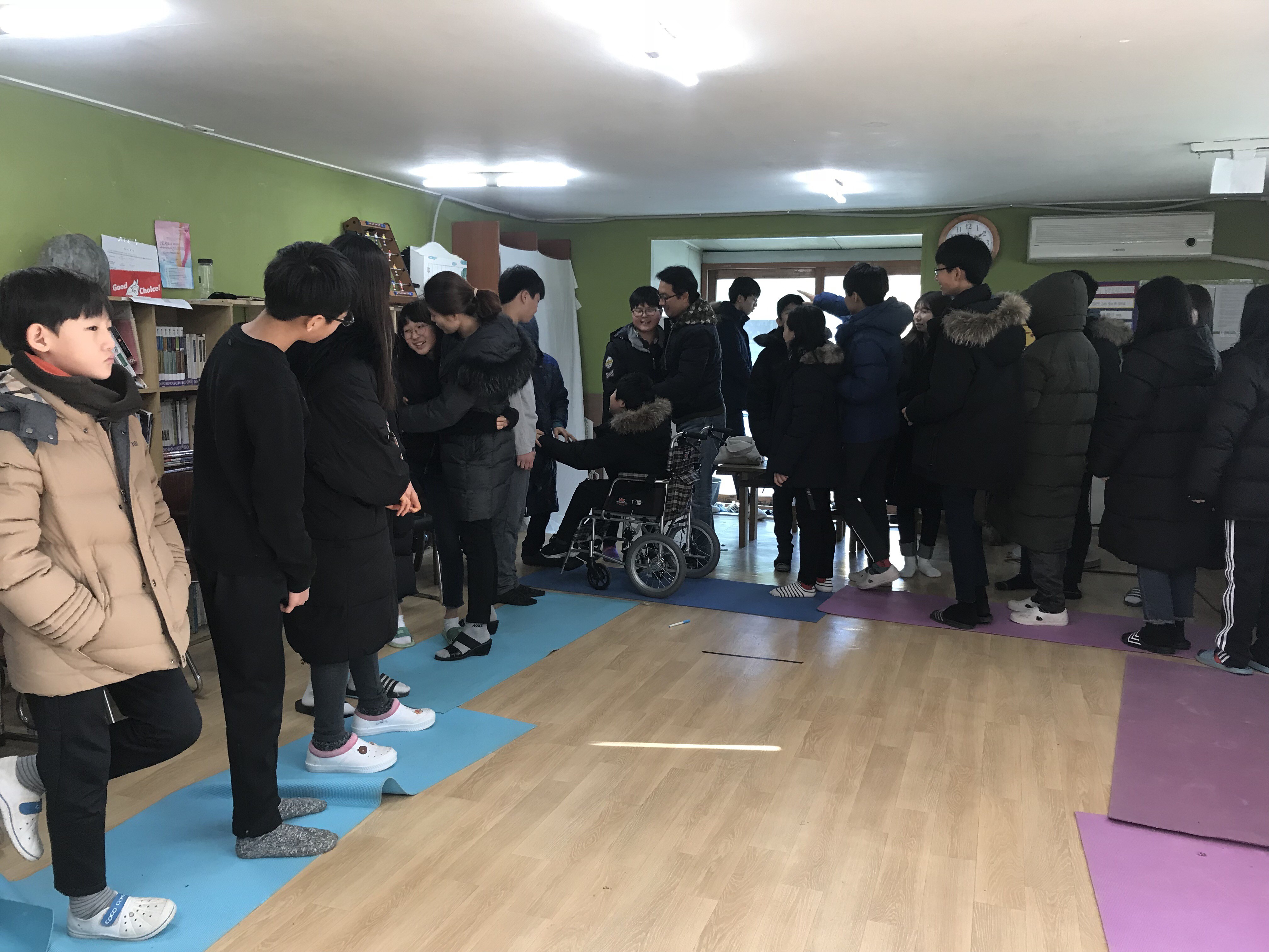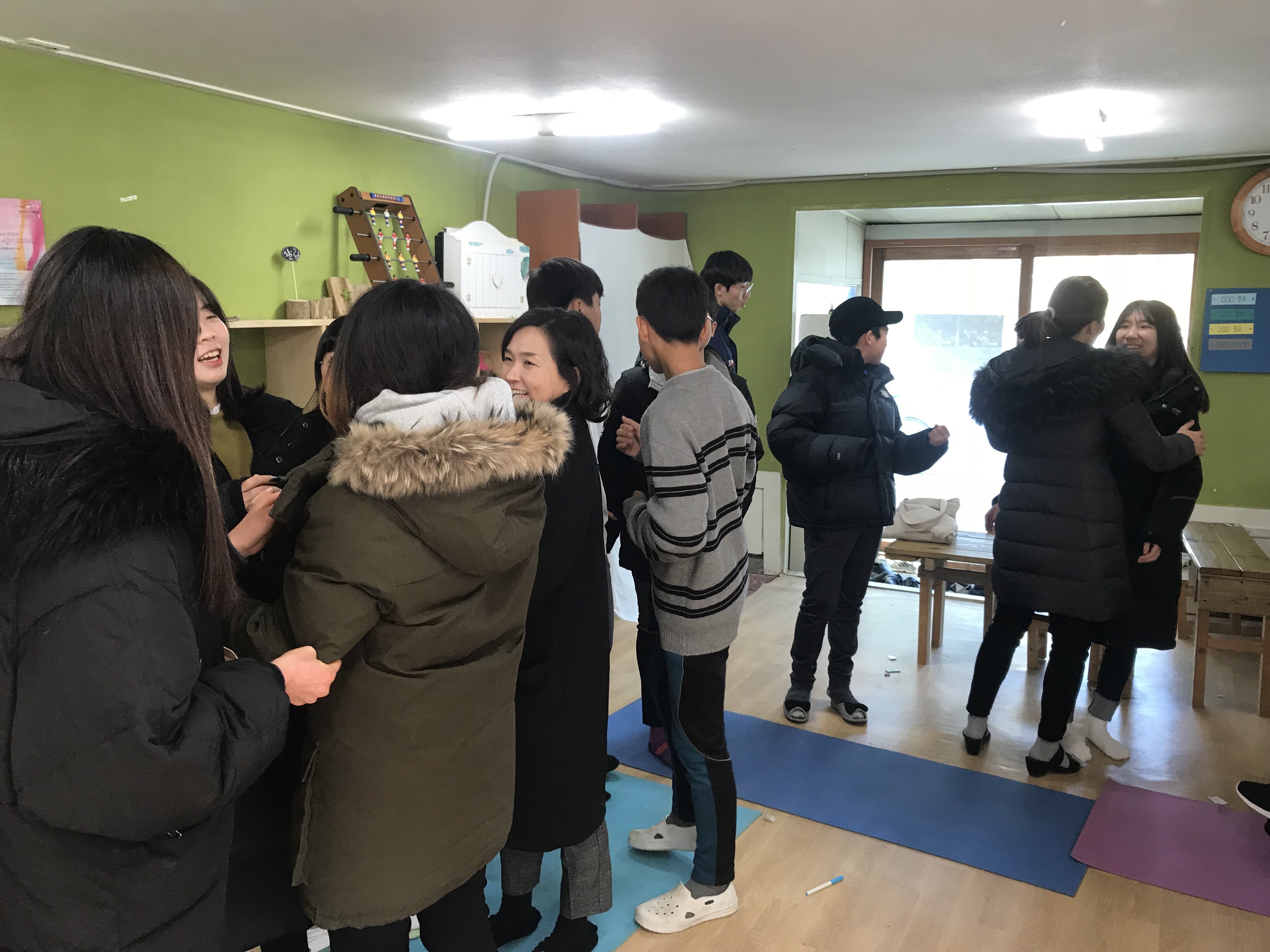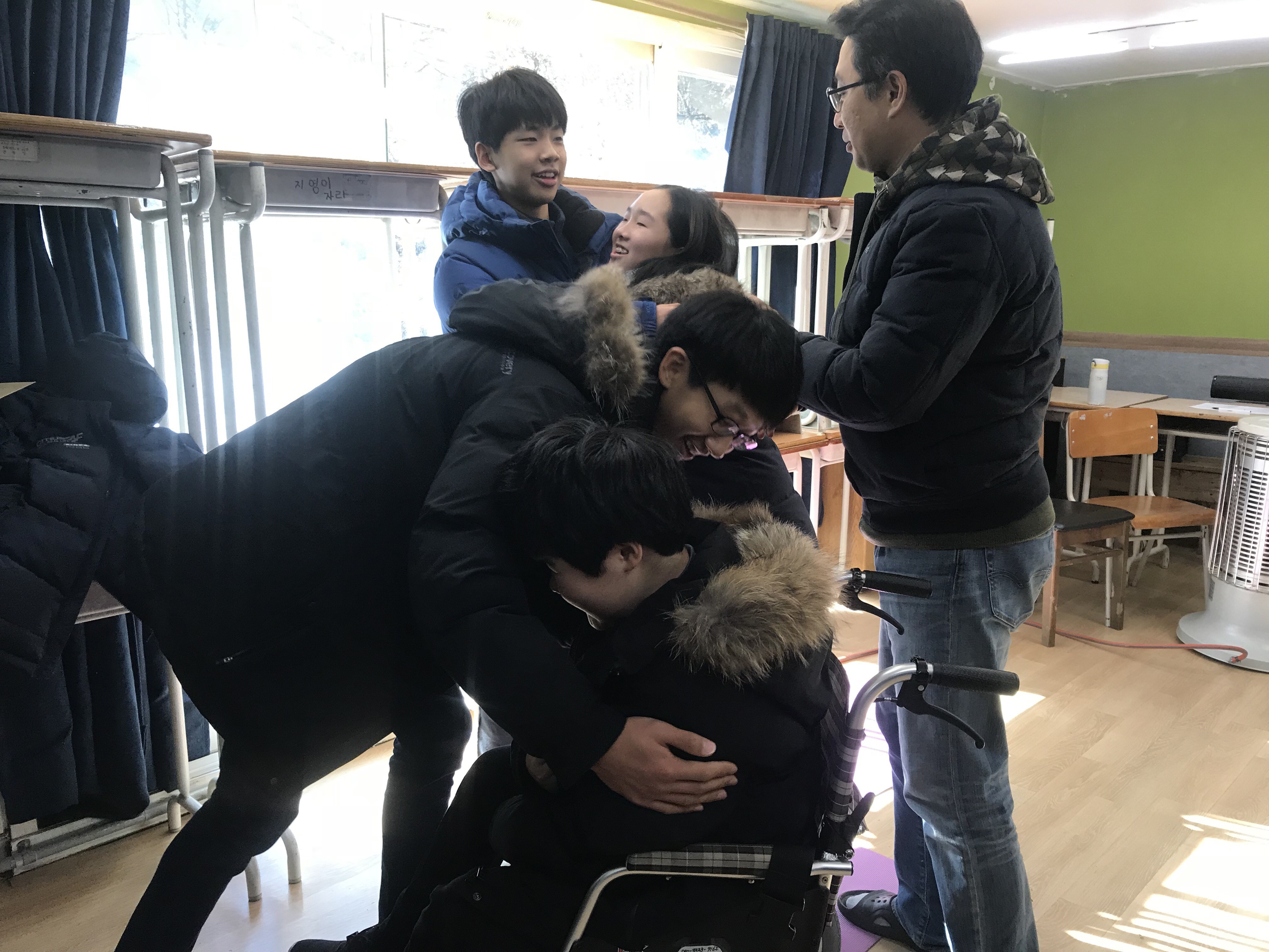 방학 등으로 긴 시간을 못 보게 될 때 저희는 돌아가면서 악수와 포옹으로 인사를 나눕니다.