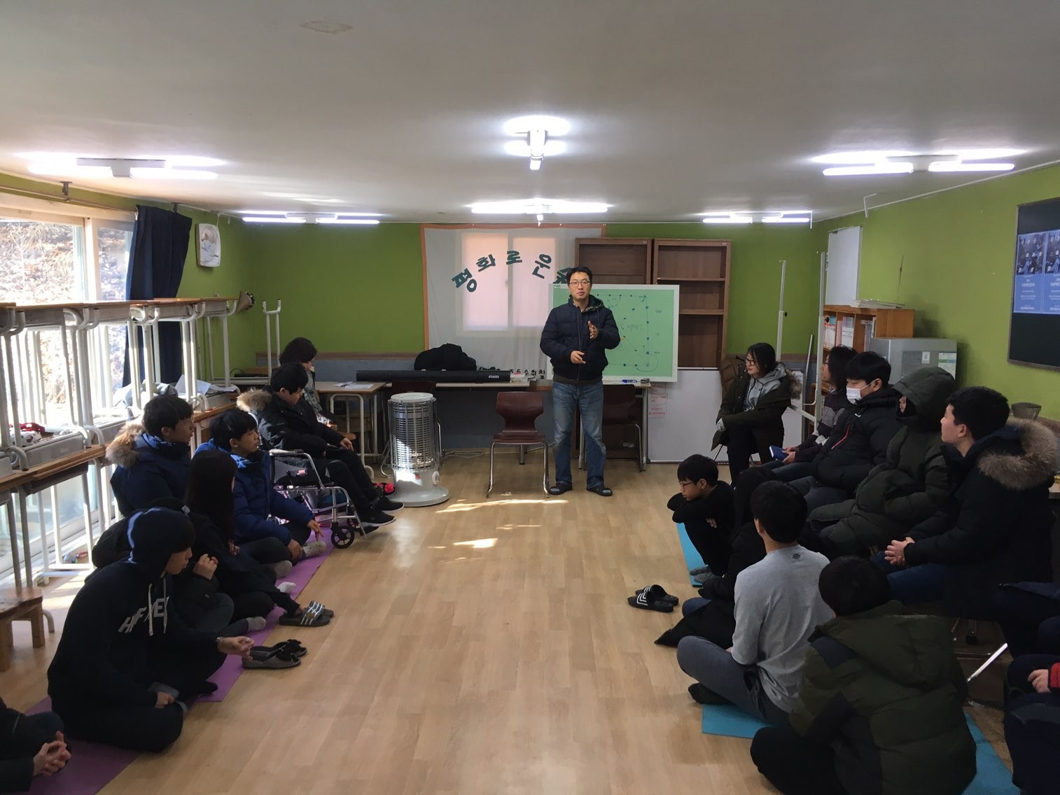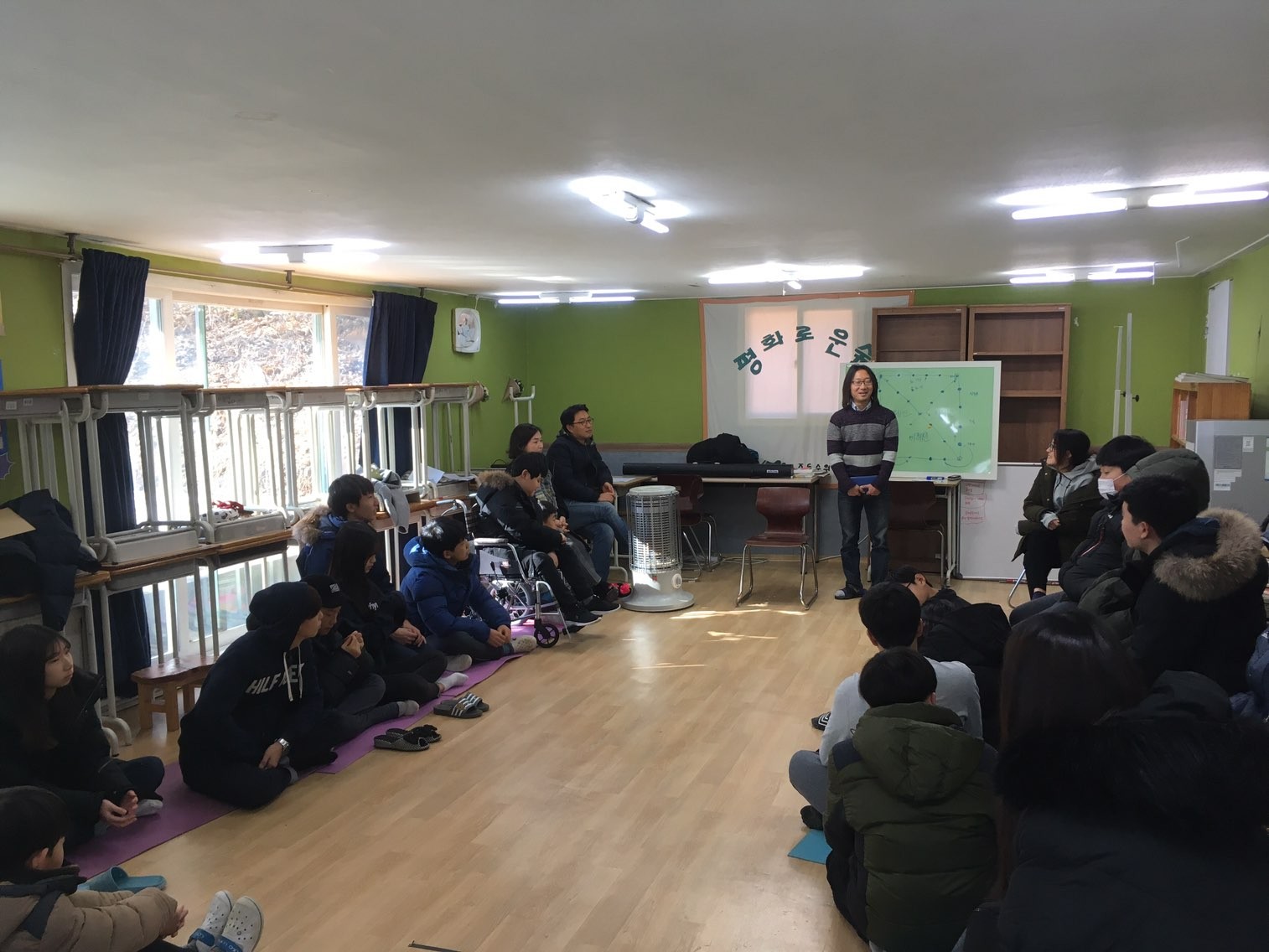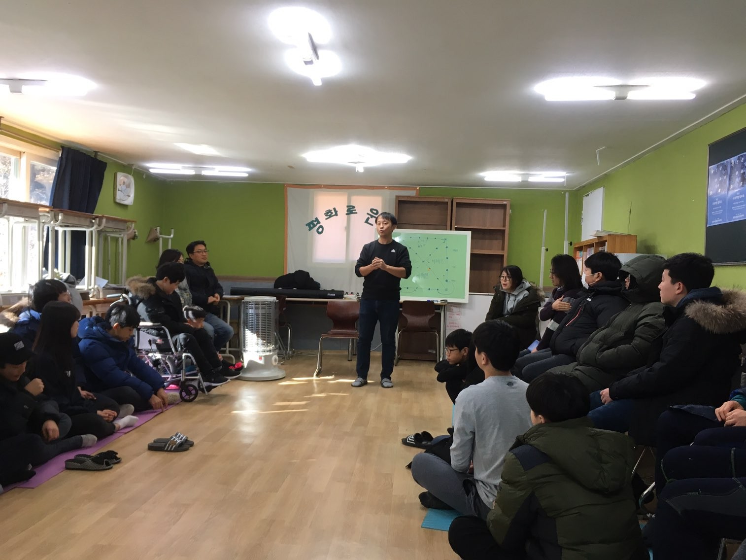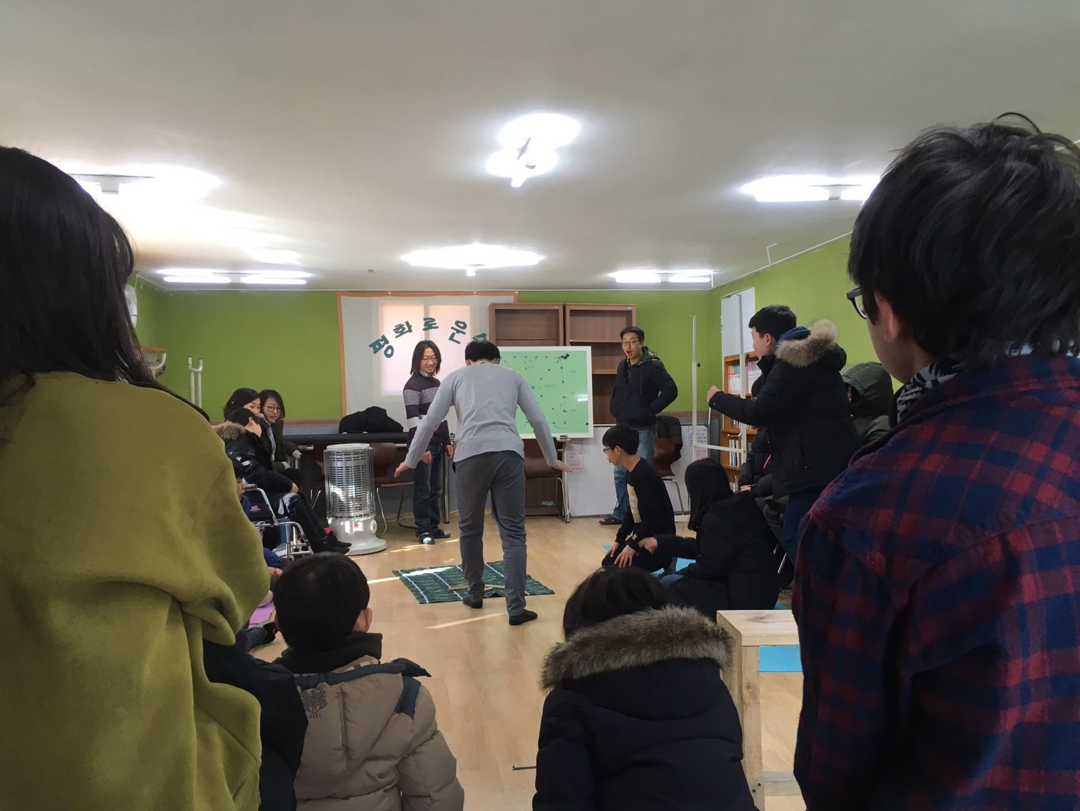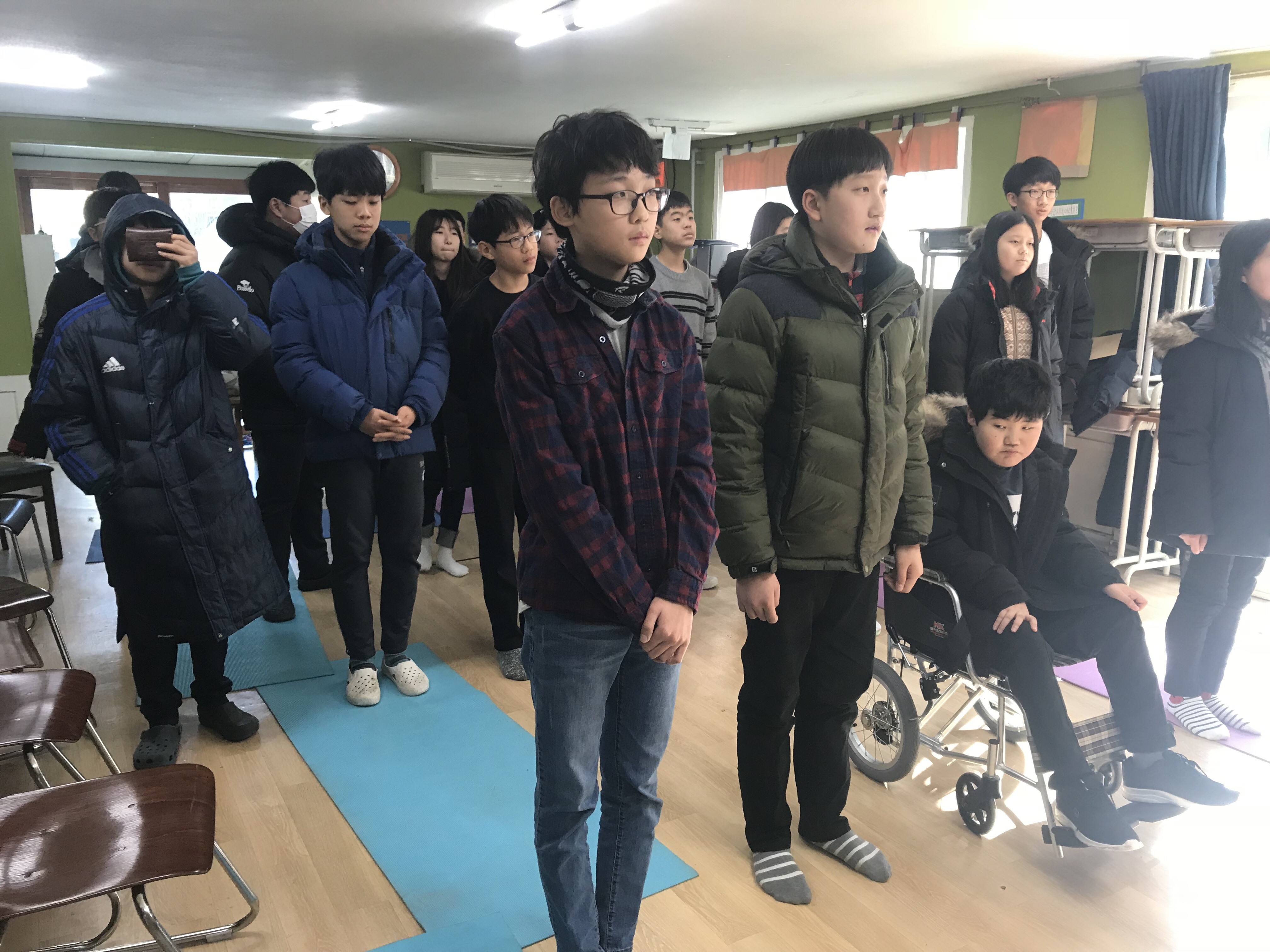 맞절을 하기 전에 설명을 듣는 학생들