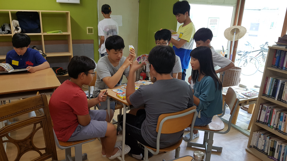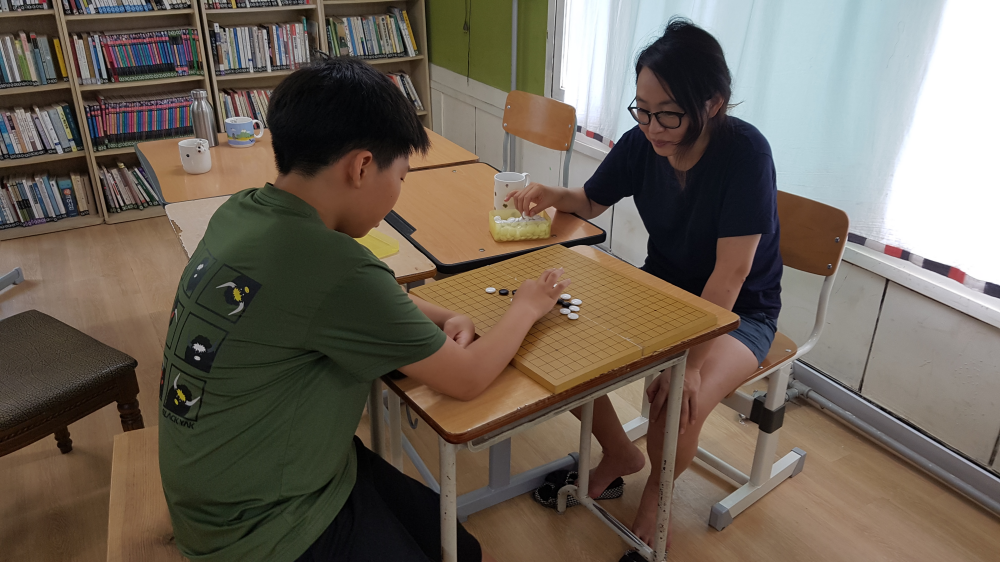 책도 보고, 오목도 두고, 보드게임도 합니다.