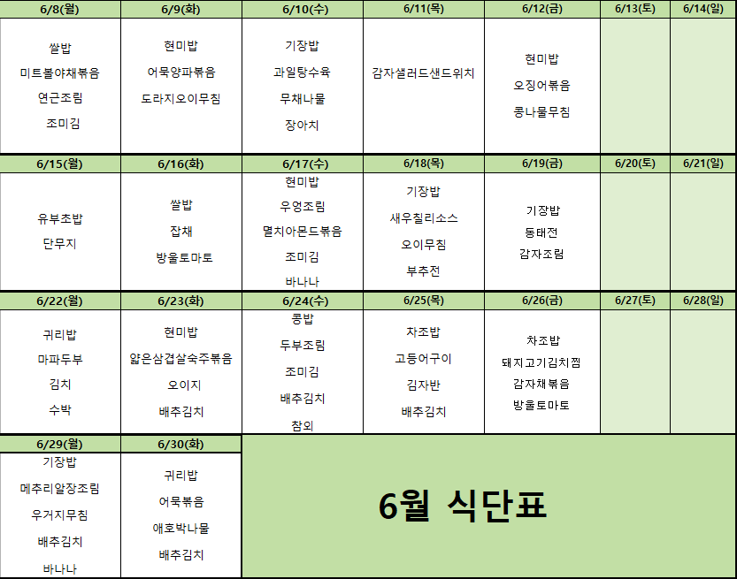 6월 식단표를 안내해드립니다. 작성자 Noah 작성일 2020-06-22 21:15 조회 1544 좋아요 2 싫어요 0 인쇄 전체 0 추천순 작성순 최신순 댓글을 남기려면 로그인하세요. « 다음 주부터 정상 수업을 합니다. (시간표 참고해주세요.) 교사모집 1차전형 결과입니다 (평화로운 숲 중등수원칠보산자유학교) » 목록보기 답글쓰기 Powered by KBoard