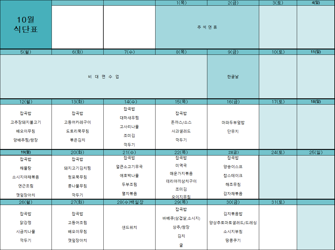 10월 식단표를 안내해드립니다. 작성자 Noah 작성일 2020-10-11 14:02 조회 1735 좋아요 0 싫어요 0 인쇄 전체 0 추천순 작성순 최신순 댓글을 남기려면 로그인하세요. « 10월 12일 대면 시간표를 알려드립니다. 교사모집 2차전형 결과입니다 (평화로운 숲 중등수원칠보산자유학교) » 목록보기 답글쓰기 Powered by KBoard