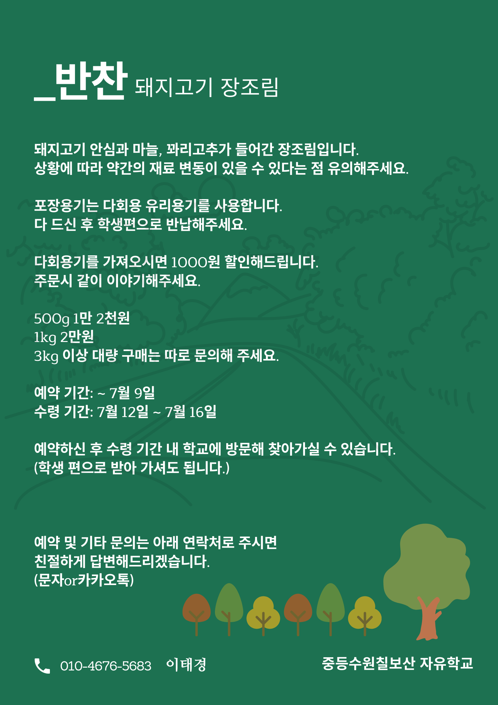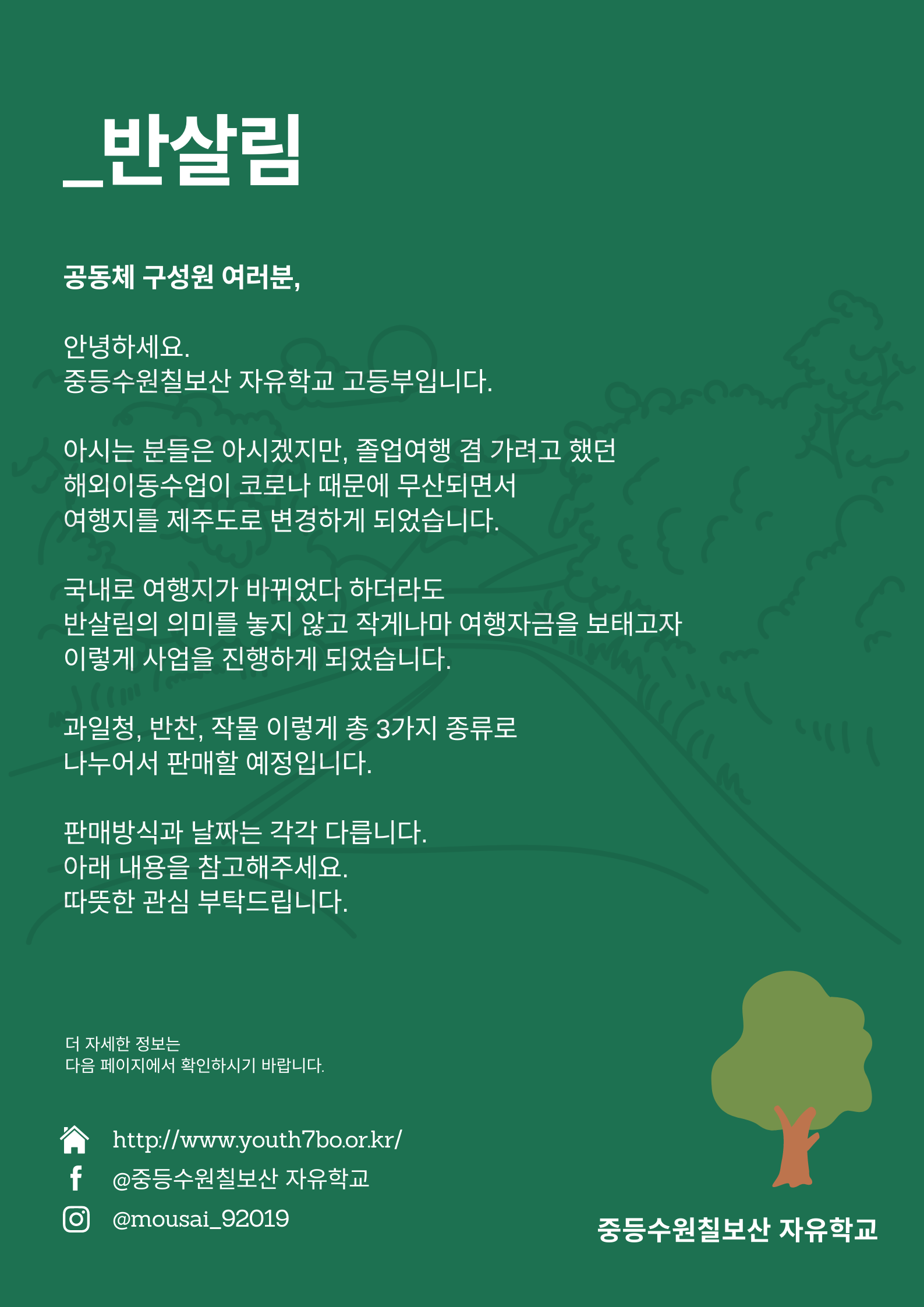 2021년 반살림을 알립니다. 작성자 최껄껄 작성일 2021-07-05 16:23 조회 2243 좋아요 3 싫어요 0 인쇄 전체 0 추천순 작성순 최신순 댓글을 남기려면 로그인하세요. « 7월 식단표를 알립니다. (수정) 새로운 거리두기 방역지침에 따른 시간표 변경내용을 알림: 7월 12일(월)부터 16일(금) » 목록보기 답글쓰기 Powered by KBoard