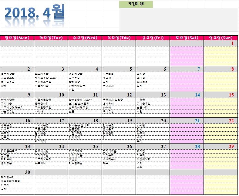 4월 식단표 작성자 kurory 작성일 2018-04-02 10:31 조회 2183 *4월 18일 수요일 봄동겉절이가 봄동 철이 지나 물량이 없는 관계로 상추겉절이로 변경되었습니다. 좋아요 1 싫어요 0 인쇄 전체 0 추천순 작성순 최신순 댓글을 남기려면 로그인하세요. « 4월 학부모상담기간을 알립니다. 제주 4.3을 기억합시다. » 목록보기 답글쓰기 Powered by KBoard