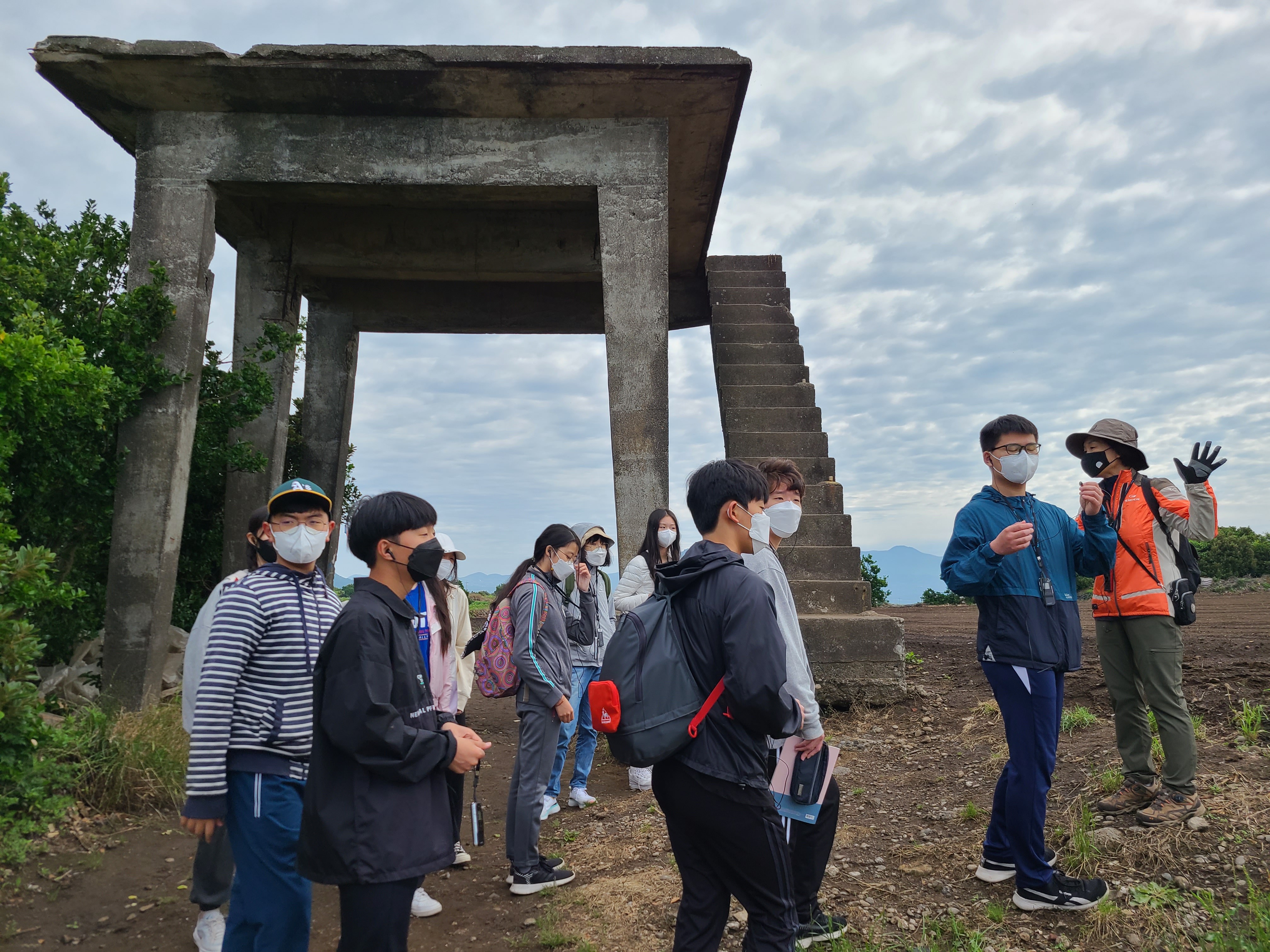 설명을 들은 뒤, 알뜨르 비행장이 잘 보이는 곳으로 이동했습니다. 이 건축물은 주둔부대에 식수를 공급하던 수조시설이라고 합니다.