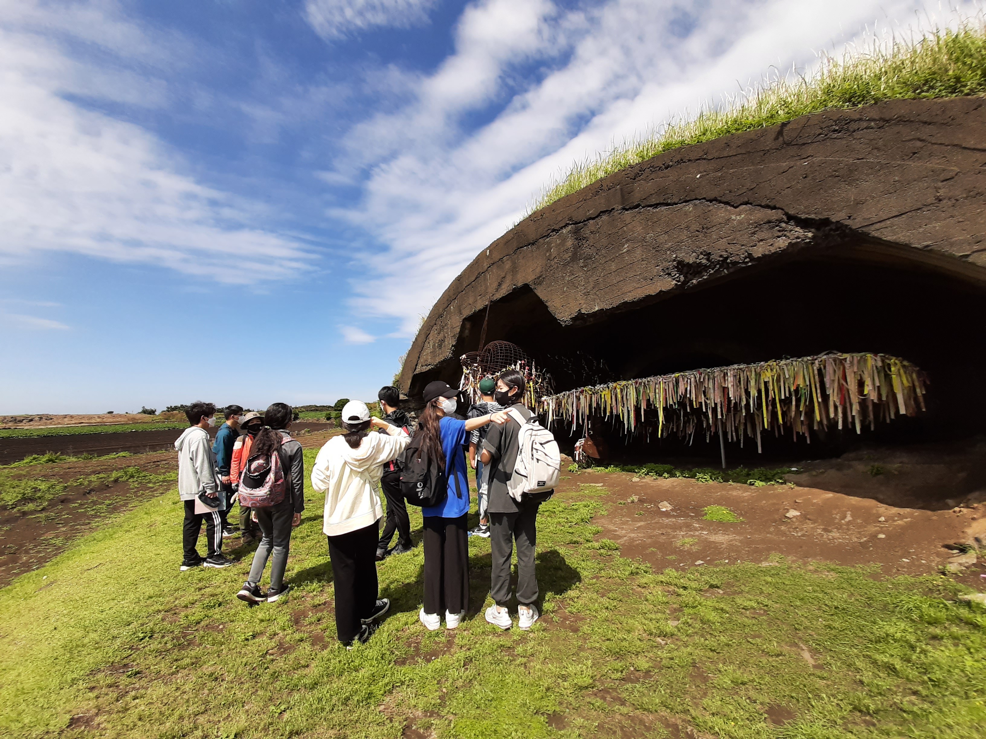 어제와 달리 오늘을 날씨가 맑습니다. 문정순 해설가 선생님이 알뜨르 비행장에 대해 설명해 주십니다.