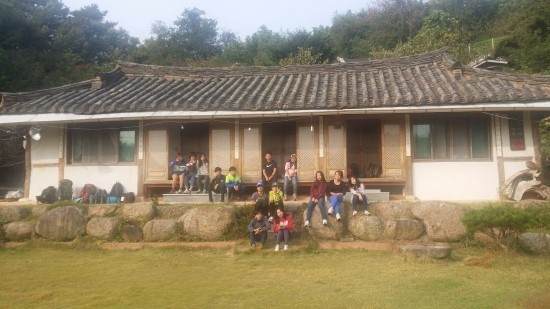 나가기 전에 섬돌아 앉아 글을 쓰고 단체사진을 찍습니다...