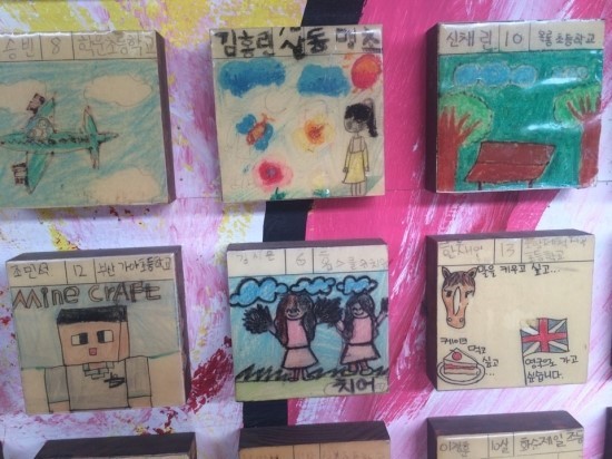 다리엔 조그만 그림블럭이 수도 없이 붙어 있는데, 만들었을 다시 순천의 초등학생들이 그린 것이라고 합니다..
