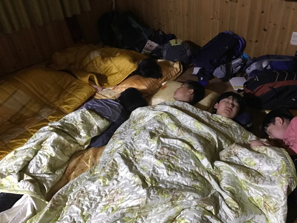 지난 저녁에 고온으로 밥도 못먹고 누워있던 병희를 위해 찬수건 머리에 올려주고 , 죽 끓여주며 걱정해 주던 친구들의 보살핌과 병희의 회복력으로 늦은 밤, 병희의 열은 다행히 내렸습니다. 새벽등반을 위해 지난 밤, 아이들은 평소보다 조금 일찍 잠들었습니다. 3시에 일어나 밥 먹고 도시락 싸고 4시에 출발합니다. 아직 기운이 없는 병희는 새벽등반이 무리일듯해요. 병희먹을 죽 데워놓고 . 선생님 전화번호 남겨놓고, 주인아저씨께 부탁의 문자 남기고 산으로 출발합니다.