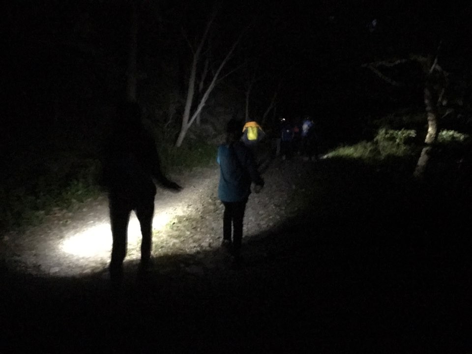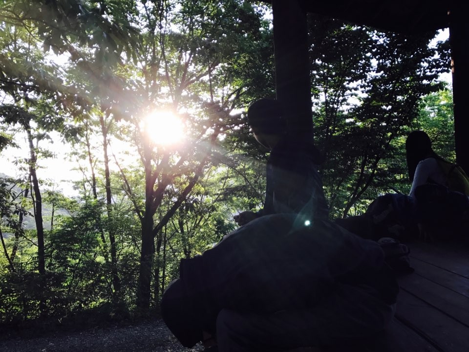 무등산 등산코스 6시간을 계획합니다. 여기서 정상까지는 2시간 조금 안되지만, 능선을 따라 더 나아갈 계획으로 오릅니다. 아직 깜깜한 숲속에서 헤드랜턴머리에 두르고 어두운 산으로 오르는 길은 무섭긴 하지만, 모두 함께라 신납니다. 깜깜한 숲에서 어둠을 느껴보기 위해 렌턴을 모두 끄고 올라보기도 합니다. 무성한 숲속에서 동물소리, 나뭇잎 바스락거리는 소리가 더 크게 들립니다. 새벽하늘의 별을보며 숲을 함께 걸어갑니다. 어둠이 주는 신비로움을 온몸으로 느끼며 친구들과 렌턴으로 장난치며 시끌시끌 웃고 이야기하며 산을 오릅니다. 정상(전망대)까지가는 이정표를 따라 오릅니다. 정상에서의 아침풍경을 보며 먹는 아침도시락이 얼마나 맛있을까요.한시간정도 산을 오르자 하늘이 점점 밝아옵니다.