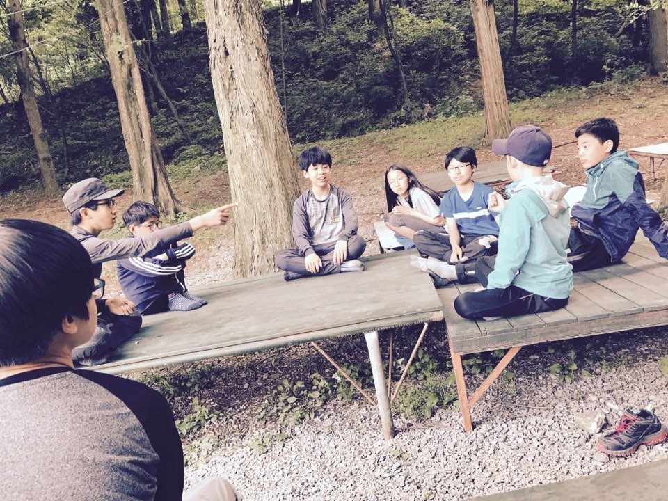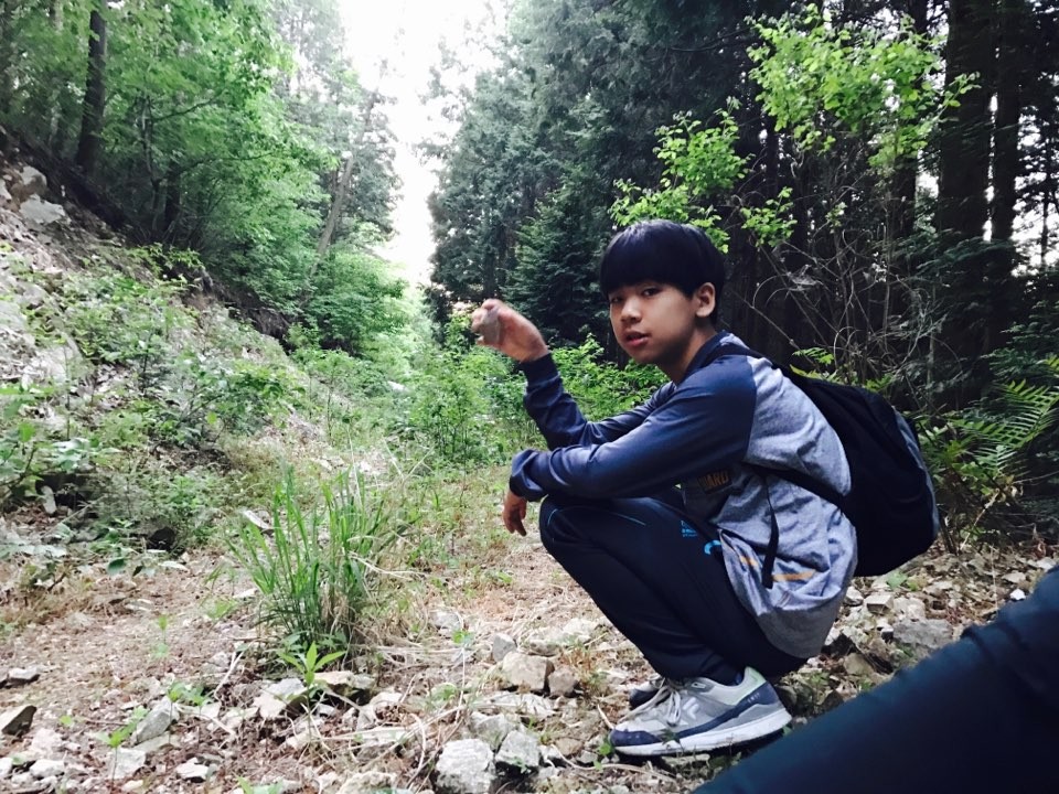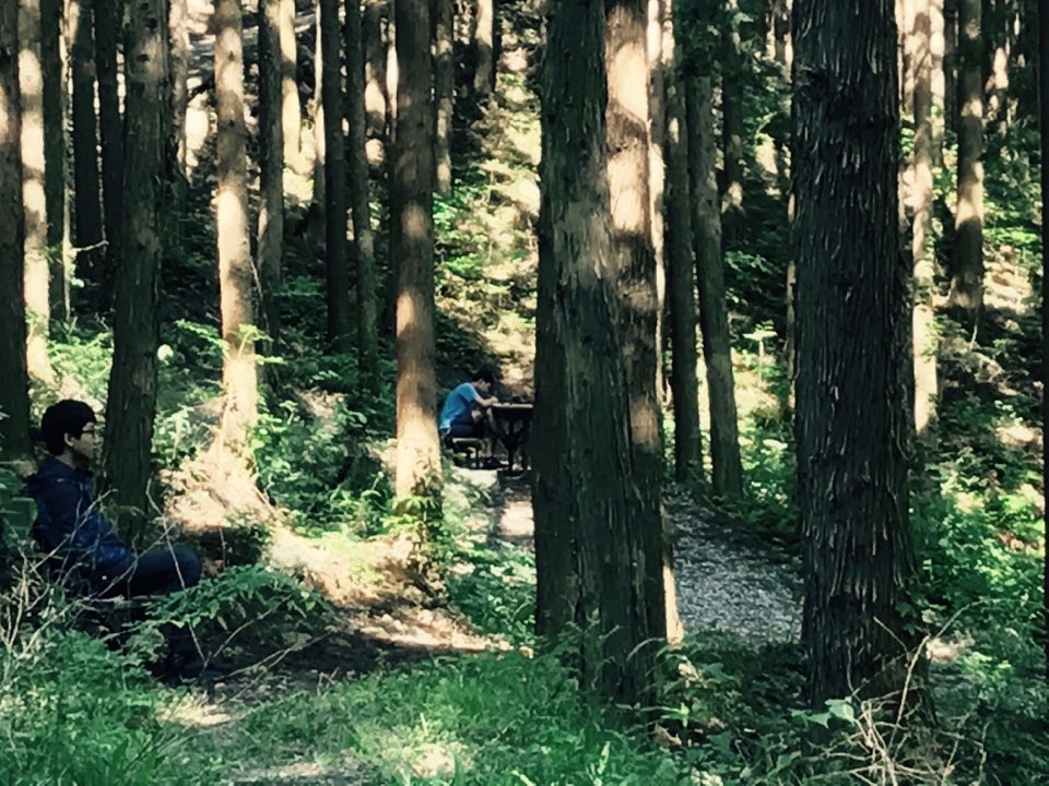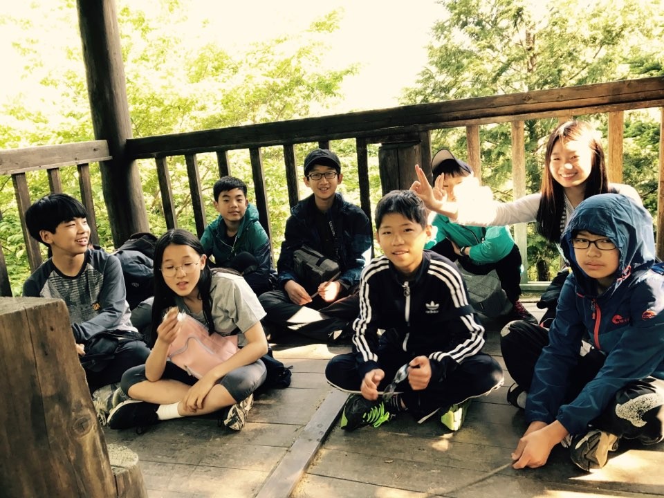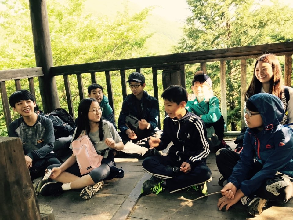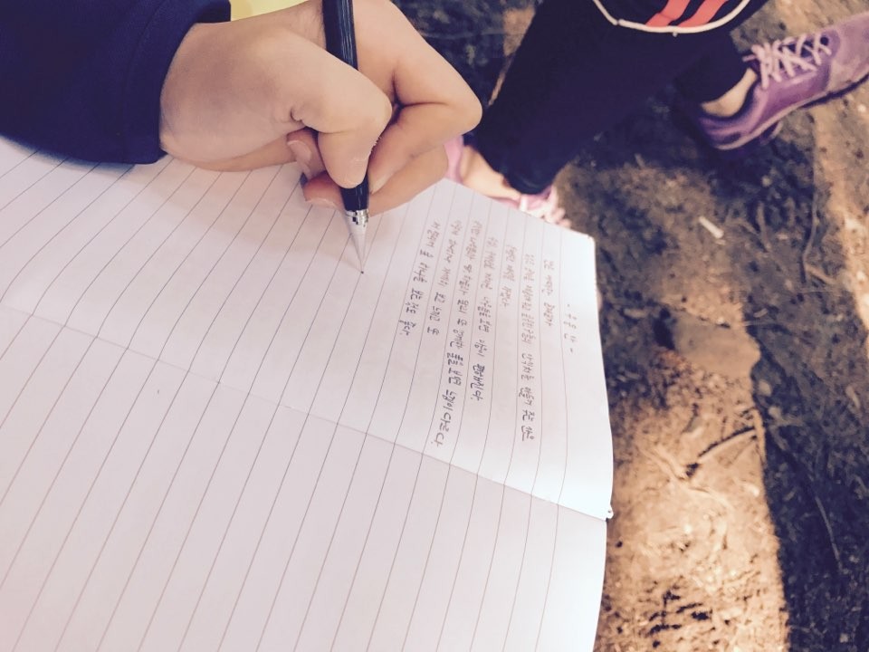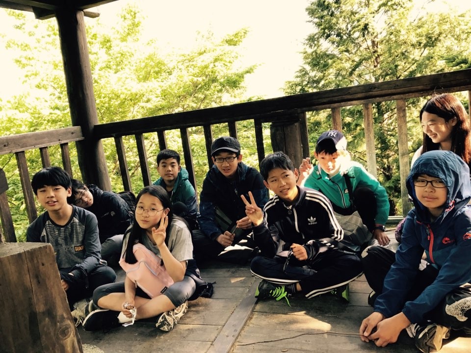 새벽에 먹은 아침이라 아직 시간은 아침인데 점심도시락을 일찍 먹고 숲에서 혼자의 시간을 가지며 글을 씁니다. 민수는 정상에 오르지 못한 아쉬운 마음을 담아 일기를 씁니다. 태경이는 아름다운 숲속에서 새소리들으며 시 몇 편 지어봅니다.