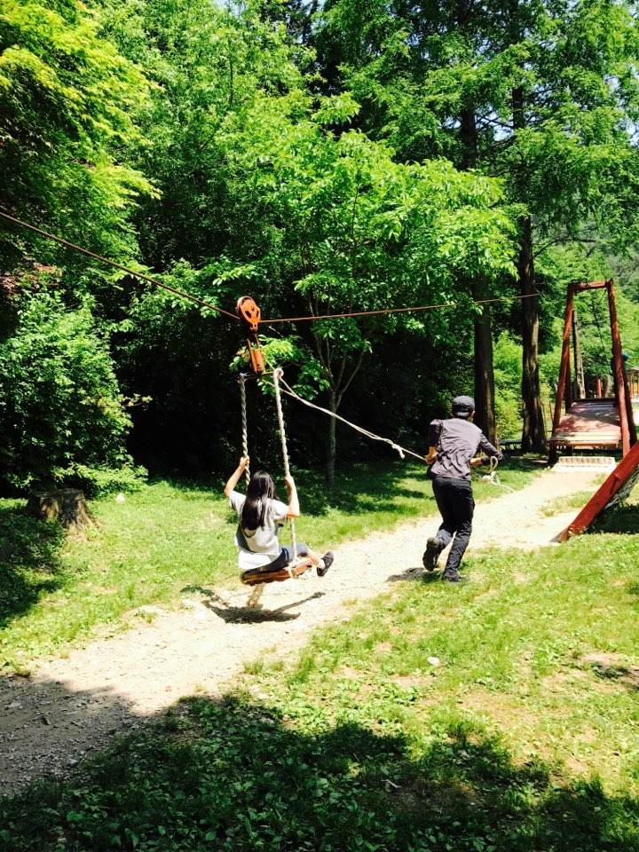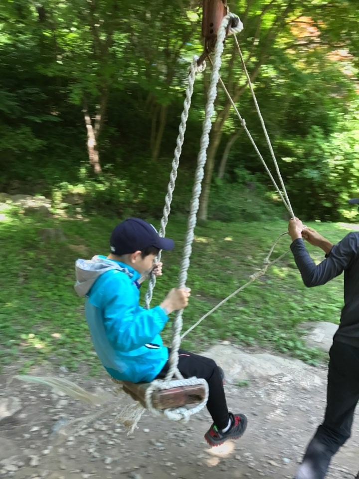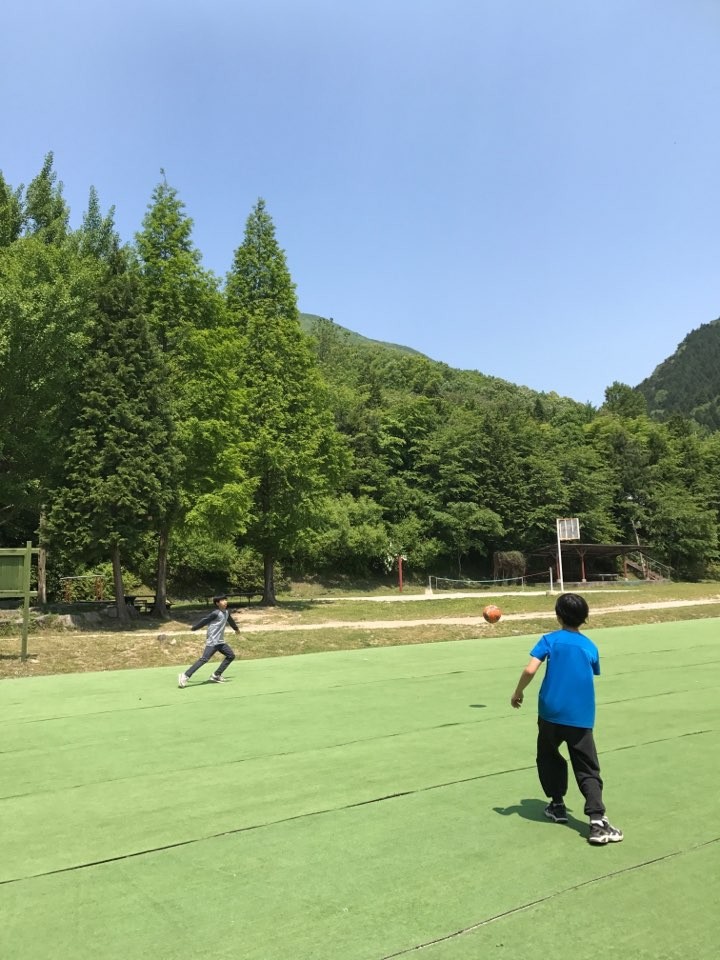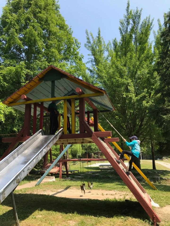 지금은 11시~ 새벽부터 긴장하며 이동하다보니 저는 너무나 피곤합니다. 그런데 아이들은 밥만 먹고나면 에너지가 넘쳐요. 숲에서 술래잡기 할지, 축구공을 빌려 휴양림 운동장에서 공놀이를 할지 ~ 고민하다가 축구공을 빌려 운동장으로 달려갑니다. 넓은 운동장 옆에 이색적인 놀이터까지~ 이곳은 우리가 신나게 놀기 아주 적당합니다.