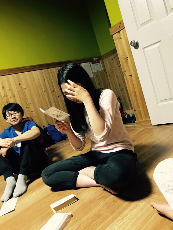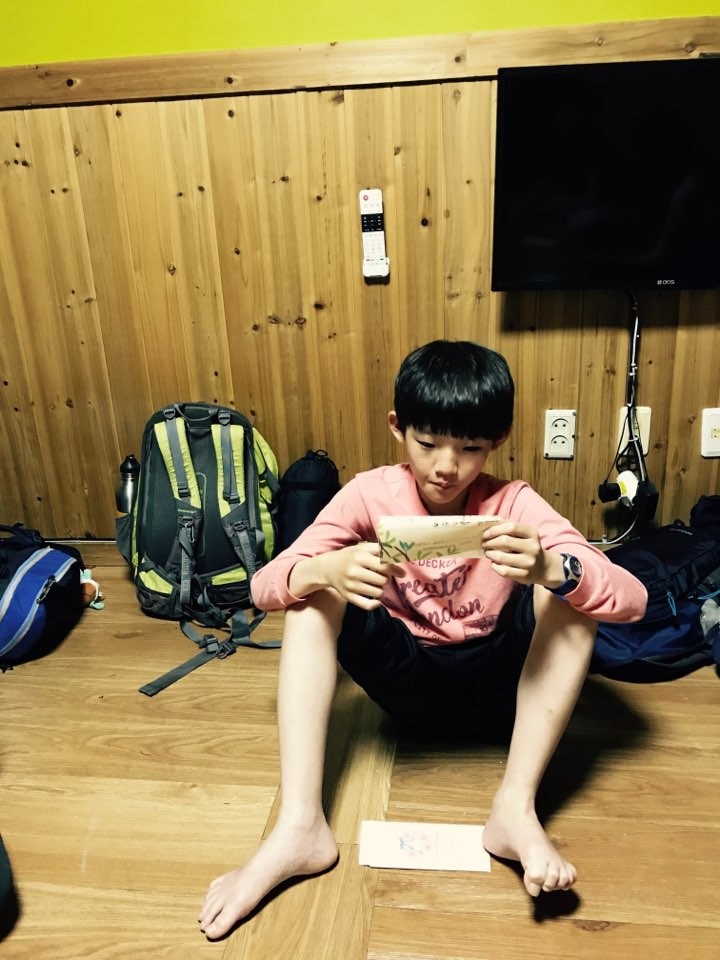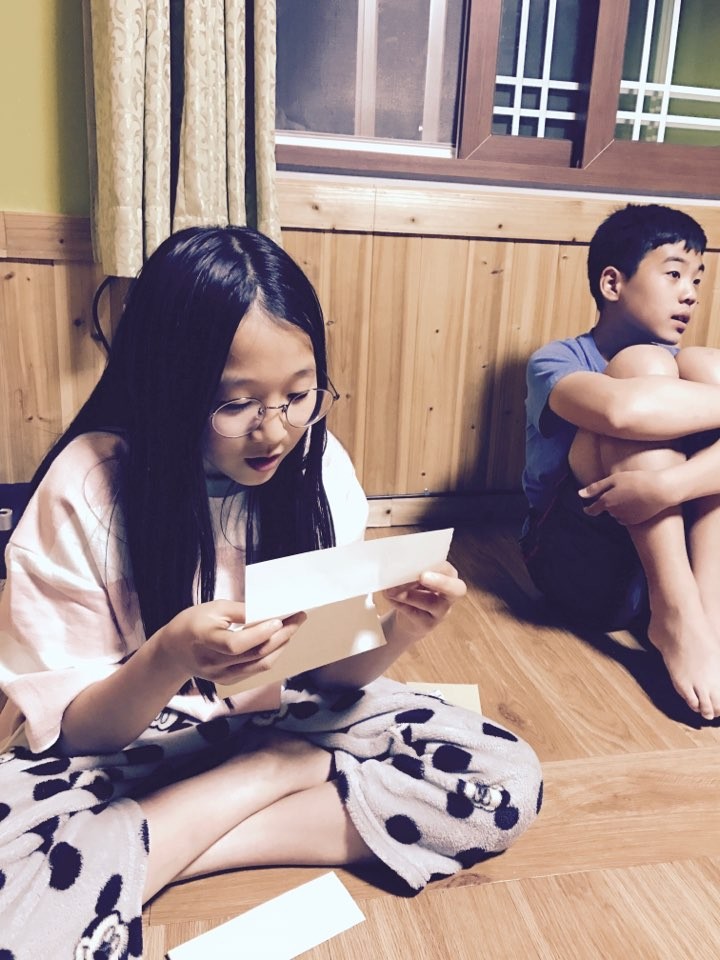 5시쯤 되니 배가 고파집니다. 저녁을 이리 일찍 먹어도 되는지 모르겠지만, 새벽3시에 일어나 지금까지 하루가 어찌나 긴지~ 미역국을 끓여서 이른 저녁을 먹고 씻고, 치우고 잠들기 전에 부모님편지를 꺼내어 읽습니다. 자신의 목소리로 부모님의 글을 읽는 경험은 어떨까? 생각만해도 코끝이 찡한데,,, 오늘은 인정이만 잠깐 울고 다른 친구들은 아주 담담합니다. 친구가 읽어주는 부모님편지를 듣고 있으면, 그 친구의 어린 시절, 친구를 사랑하는 사람들, 모든 것들이 겹치면서 친구의 존재가 세상 유일한 소중한 것이라는 것을 느끼게 됩니다.