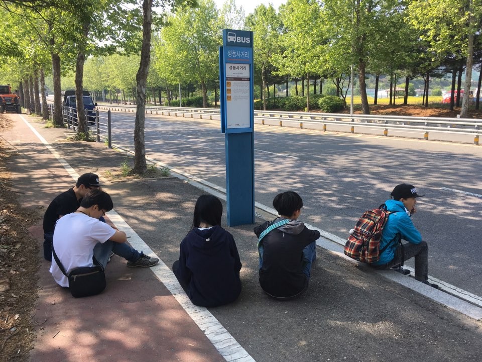 지하철을 내려 또 다시 마을 버스를 기다립니다. 다행스럽게도 10분 후에 버스가 도착할 예정.