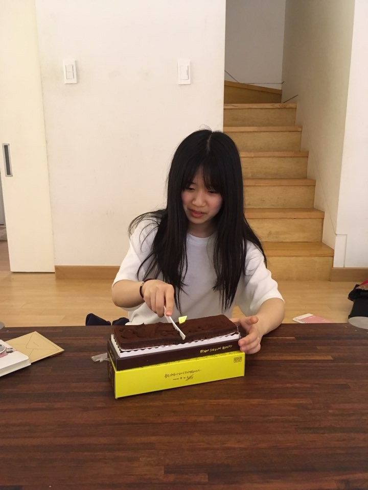 크지는 않지만 모두 마음을 모아 준비한 케이크를 자르는 경빈.