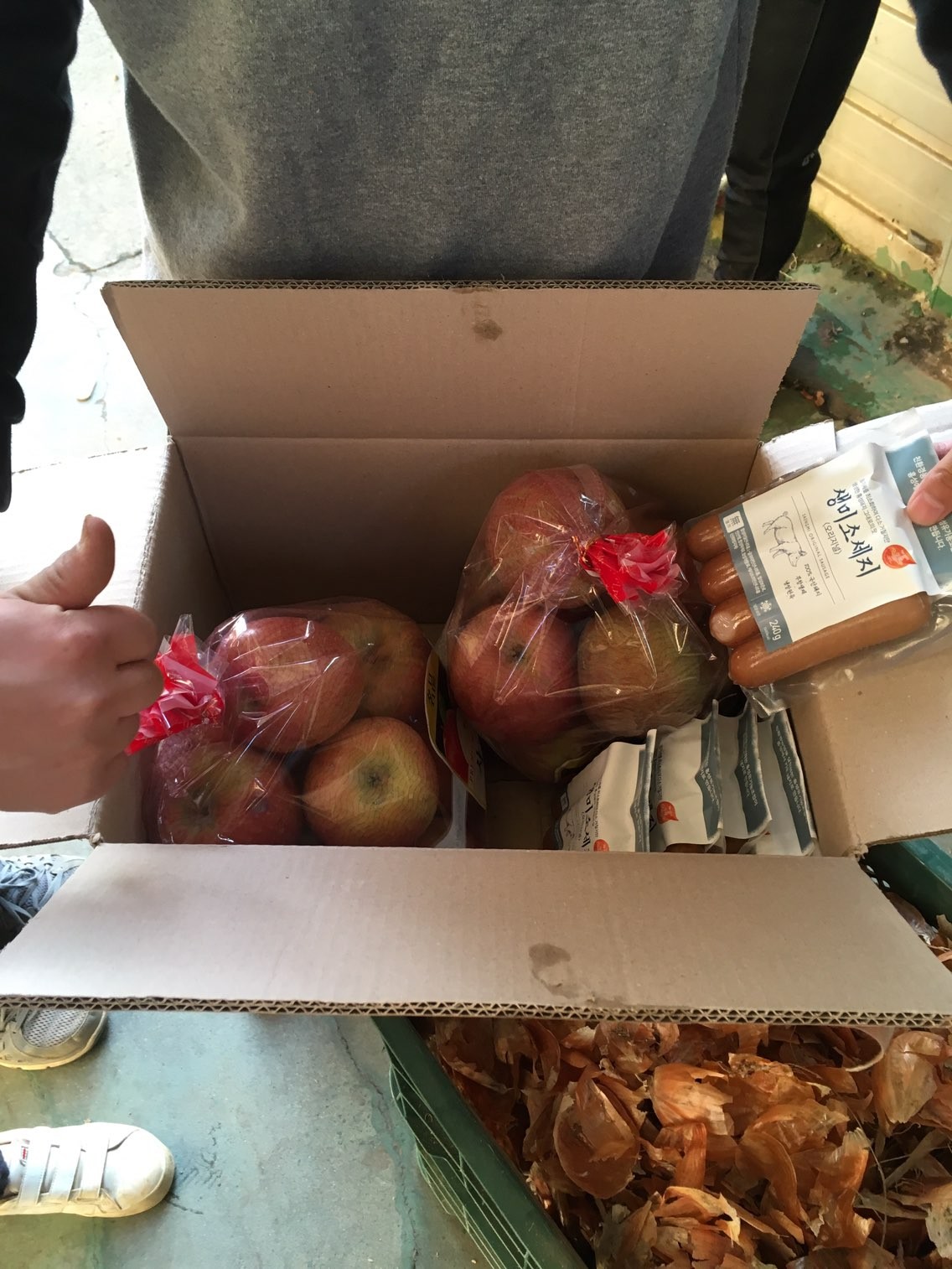 영농조합 분들이 고생했다고 챙겨주신 유기농 소시지와 유기농 사과