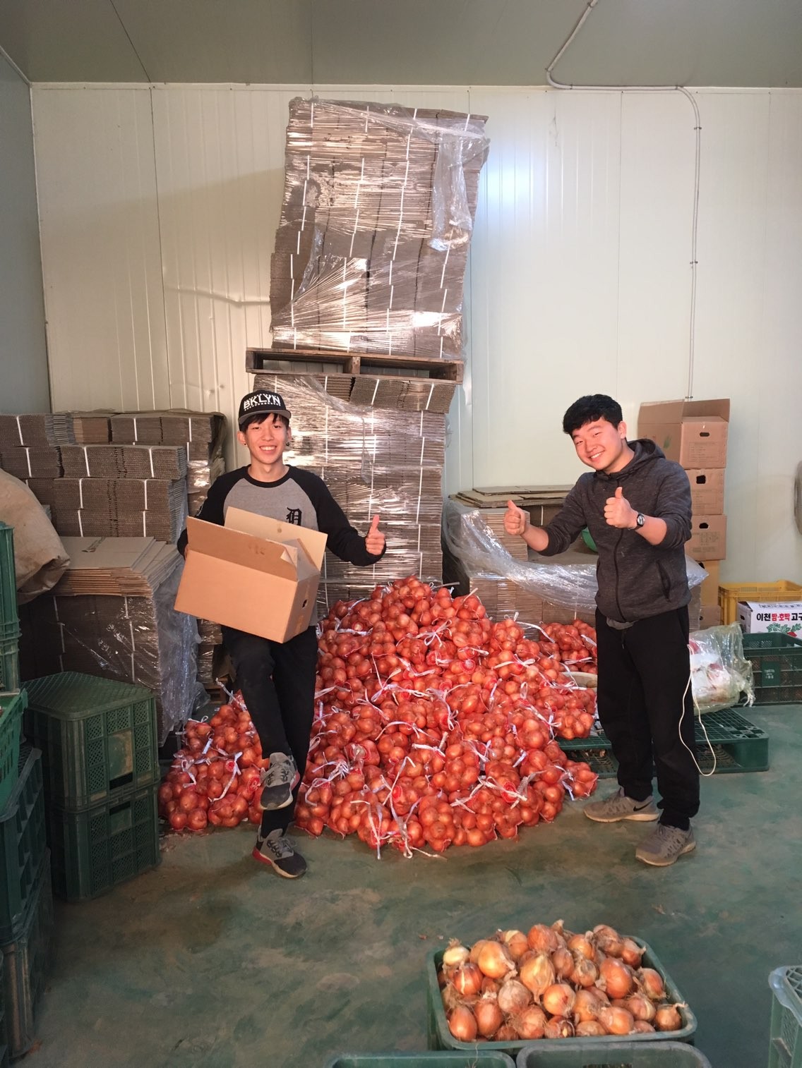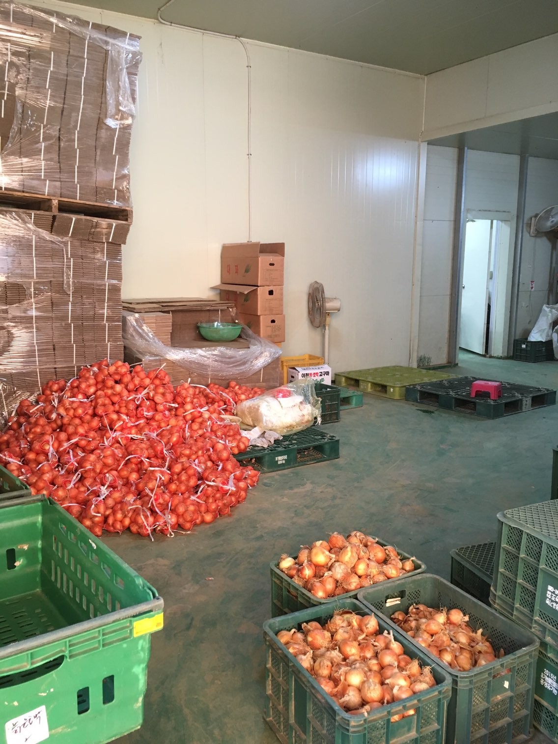저희가 오늘 홍성유기농영농조합에서 할 일은 양파 포장입니다. 협업농장에서 같이 나오신 김현주 선생님과 규빈, 지수, 은기, 준서가 한 팀이 되어 양파를 포장하게 됐습니다. 경빈은 사무실 쪽으로 들어가서 쌈채소 포장을 했습니다. 양파는 6월 경 모든 수확이 끝납니다. 수확이 끝난 양파는 이곳 창고로 보내져서 저온 저장됩니다. 그렇게 보관되던 양파를 수요가 있을 때 창고 밖으로 꺼내 포장합니다. 저는 보통 마트에서 양파를 살 때 양파가 사계절 없는 때가 없어서 계속 생산이 되는 건 줄로만 막연하게 생각했습니다. 양파 수확은 1년 한 번이고 저장되다가 출고가 된다는 건 생각도 못했습니다.