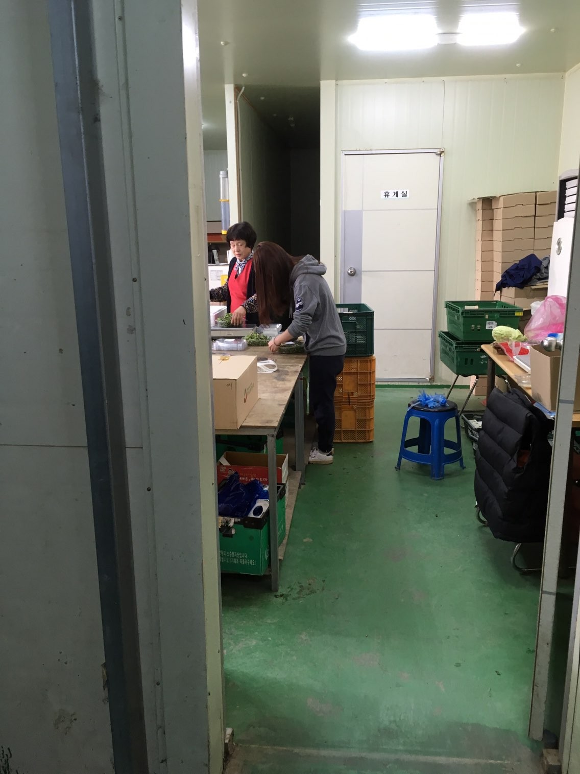 도착을 하고 나니 정면으로 큰 창고가 보입니다. 왼쪽으로는 2층짜리 조립식 건물이 서 있습니다. 모두 내려서 두리번거리고 있을 때 안에서 어떤 한 분이 나오셔서 저희를 모으고 이곳이 어떤 곳인지 설명을 해주십니다.저희가 간 곳은 영농조합에서 유통을 담당하는 곳이었습니다. 근처 농장에서 생산한 농산물들을 모아서 보관하고, 포장하고, 납품하는 등의 유통을 진행합니다. 학교 급식으로도 보내지고, 익숙한 두레 생협으로도 보내집니다. 저희가 협업농장에서 딴 쌈채소들도 이곳으로 와서 포장이 됩니다. 이렇게 와서 보니 생각이 좀 더 확장됩니다. 열심히 심고, 관리하고, 재배해서 생산한 농산물들이 이렇게 중간 유통 과정을 거치지 않는다면 아무 소용이 없는 일이 됩니다. 생산자와 소비자를 연결해주는 다리 역할을 하는 곳이었습니다. 쌈채소만 따다가 갔다면 그 그림을 모르고 갈 뻔했는데 중간 유통 과정까지 참여하면서 농산물 수확의 의미가 더 크게 다가옵니다.