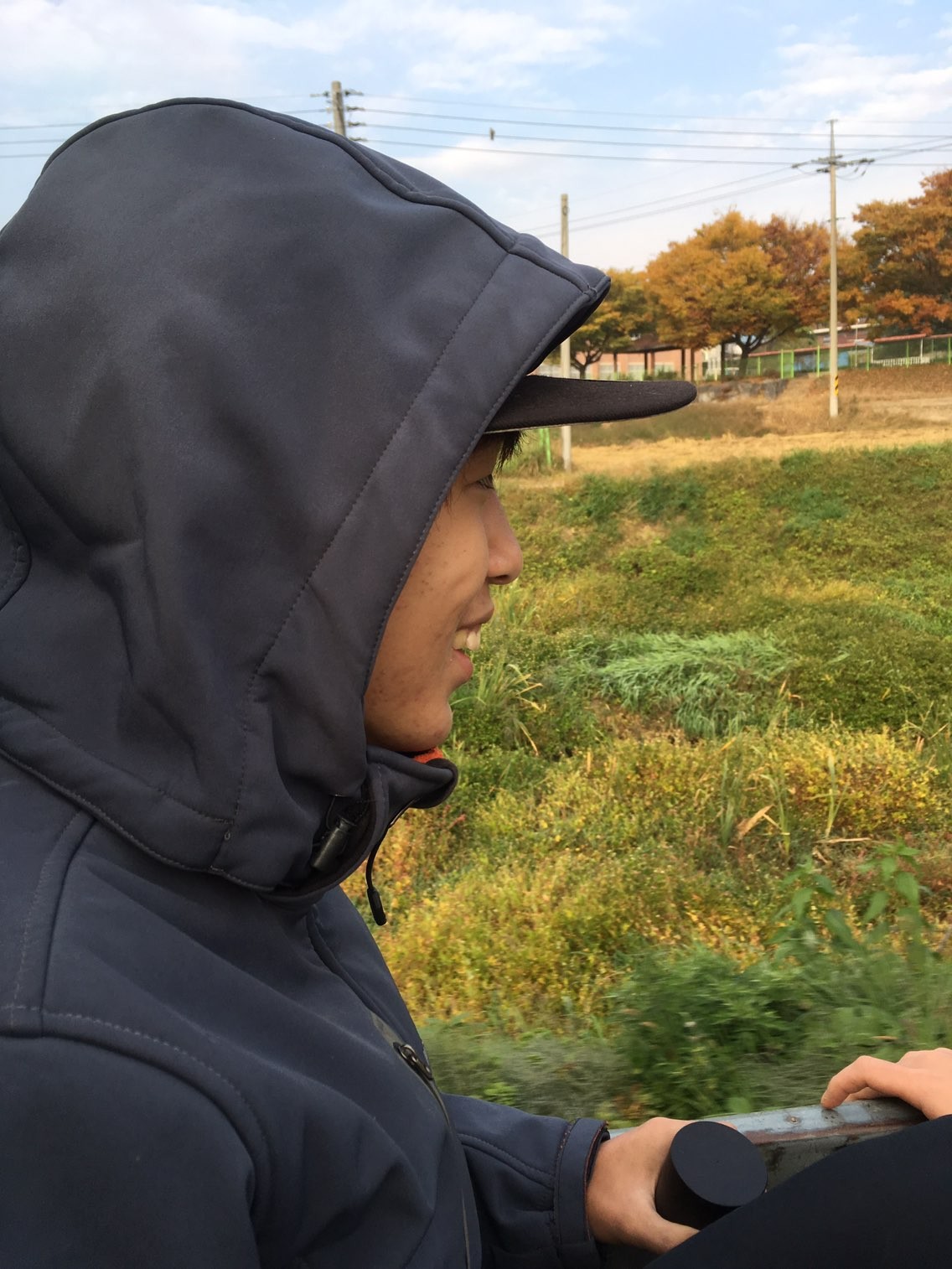 오늘 오전에 학생들은 잠깐 쌈채소 수확을 하고 홍성유기농영농조합으로 가기로 일정이 잡혔습니다. 저도 학생들과 함께 갔습니다. 자료에서만 본 홍성유기농영농조합이 어떤 곳인지 궁금했습니다. 트럭 뒤 짐칸에 밭일 할 때 쓰는 깔개를 깔아놓고 앉았습니다. 협업농장에서 차로 3~5분 정도면 충분히 갈 수 있는 가까운 거리였습니다. 추수가 끝난 논과 노랗게 익어서 추수를 기다리는 논 사이로 난 도로를 따라 시원하게 바람을 맞으며 달렸습니다.