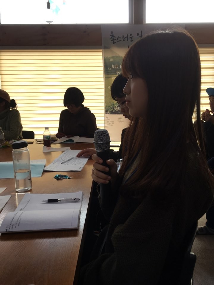일단 저는 지수 얘기처럼 초반부는 좋았어요. 후반에 보면 준비가 안 된 상태에서 돈이 들어오면 약이 아닌 돈이 된다는 이야기나 농업이라는 것이 직업으로 보면 의사와 같다는 이야기까지는 괜찮았는데 지금 보면, 강의하신 분보다 오신 분들이 더 좋은 말씀을 많이 하신 것 같아요. 그게 아산에서 오신 분이 직과 업에 대해서 저희 진로 수업과 맞게 잘 설명해주신 것 같아요. 업이라는 것이 일이고, 직이라는 것이 정신적이라는 것이라고 말씀하셨는데 저희 철학과 맞는 것 같아요. 강의해주신 선생님이 마을 사업 이야기를 주로 하셨는데, 사업이라는 것에 대해 너무 초점을 맞추지 말고 마을 사업이라는 것이 하나의 수단일 뿐이라고 아산에서 오신 분이 말씀하셨거든요. 그리고 계속 지도자 육성을 이야기했는데 지도자 양성보다는 주민 육성이 더 중요하다는 이야기가 공감이 됐습니다. 그 이유는 리더를 만들어서 리더가 끌어가는 것보다는 저희 학교처럼 공동체 방식으로 협업해서 가면 민주적 방식도 자연스럽게 잡히기 때문입니다. 또 네트워크에 대한 부분을 말씀하셨는데 그건 동의가 좀 안 되는데 제가 생각하는 네트워크는 생미 밥상이나 조합들 간의 연계 같은 게 네트워크라고 생각하거든요. 말씀하신 예는 농촌 마을의 네트워크를 중심으로 얘기하는 게 아니라 돈을 중심으로 얘기하는 거 같았어요. 그리고 리더십 역량 강화라는 표를 봤는데 기가 찼어요. 농촌의 리더십이라면 농촌에 걸맞는 역량을 제시할 줄 알았는데 이건 다른 곳에서도 이야기하는 거거든요. 이건 농촌을 도시화시키는 식 같았어요. 농촌을 무한경쟁의 장으로 보는 것 같아서 좀 그랬고 도시의 패러다임을 적용하는 듯했습니다. 저는 결론적으로 하나의 리더가 하는 게 아니라 공론적인 방법으로 협업해 나가는 것이 좋겠다는 생각이 들었습니다.