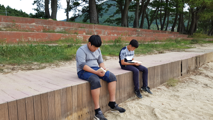 이제 물에서 나와 <침묵과 독서> 시간을 갖는다.